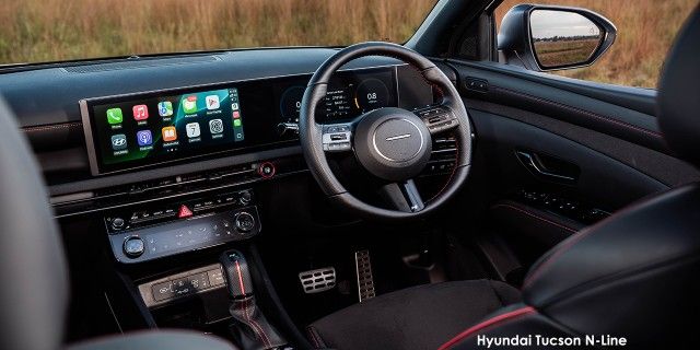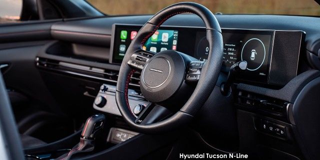 For those craving a sportier drive, the Hyundai Tucson N Line features striking 19-inch alloy wheels and a choice of full suede or leather seats for a luxurious feel. Equipped with smart and adaptive cruise control, this SUV ensures effortless highway cruising. Advanced safety features, including forward collision avoidance, lane following assist, and a tyre pressure monitoring system, provide added peace of mind on every journey.
